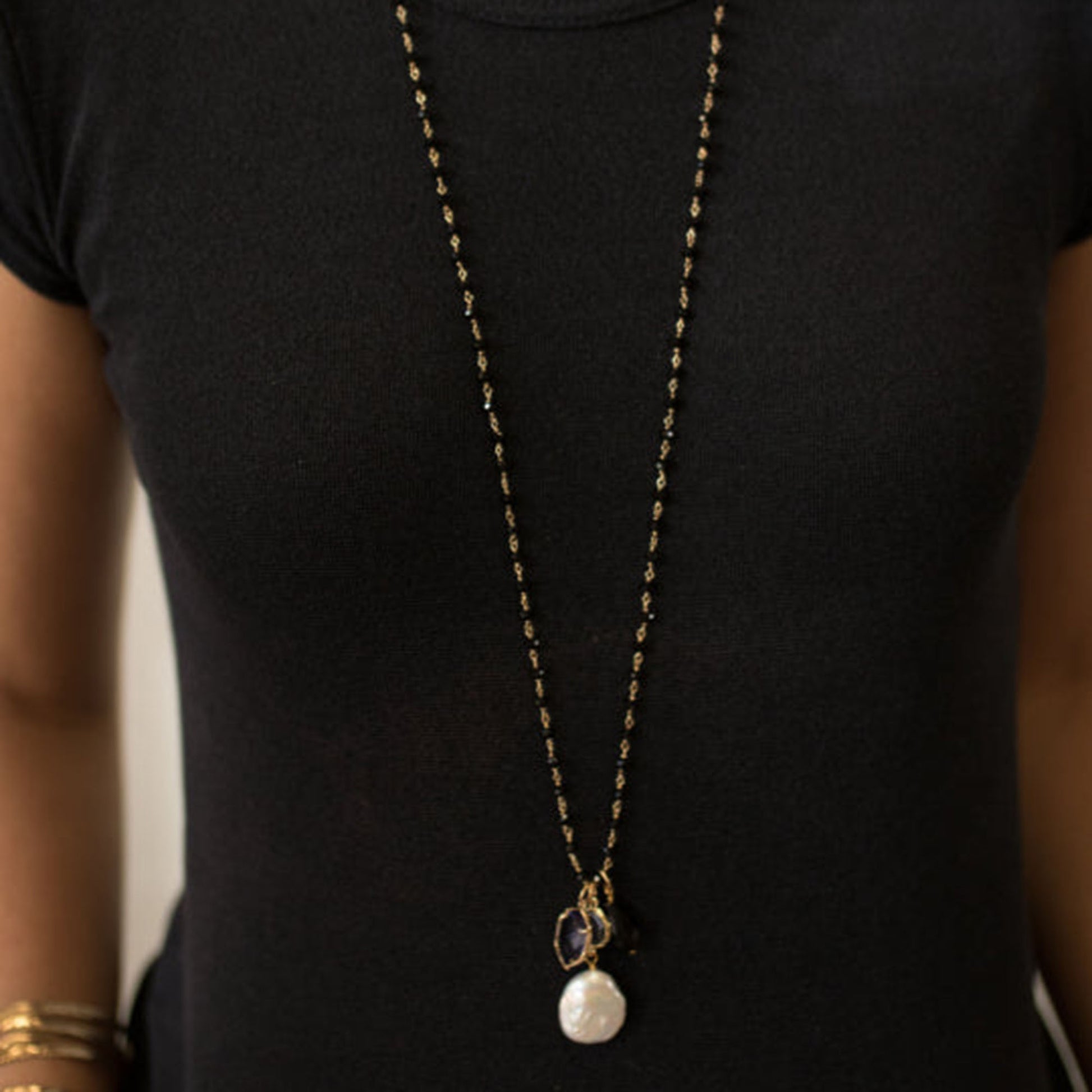 Marla - Crystal and Freshwater Pearl Necklace with Charm