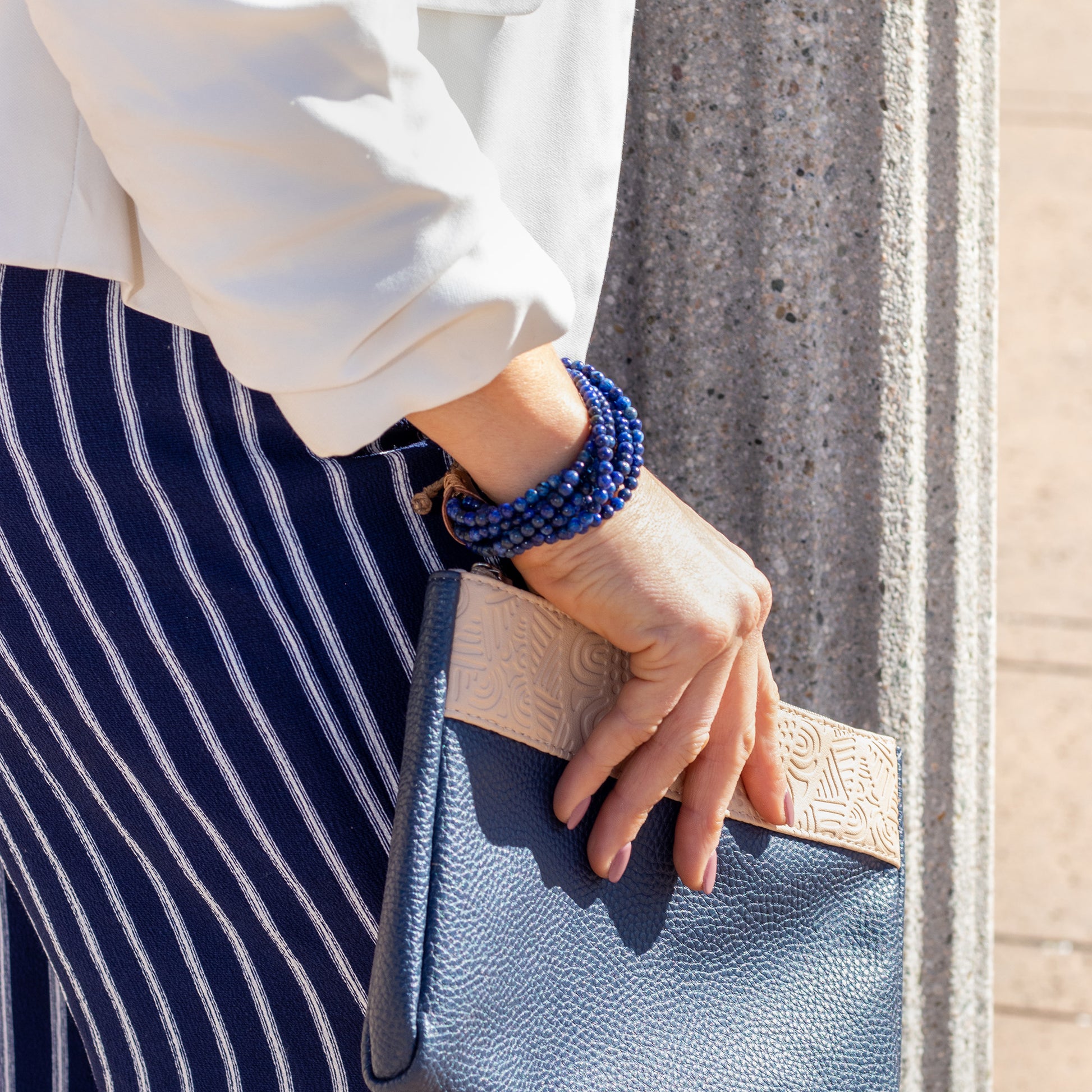 When you really want to make a statement, reach for Scotia. Our multi-strand beauty features eight strands of natural stones in four unique color schemes—coastal Amazonite, mystical Labradorite, classic black and deep lapis. All, capped in an eye-catching, adjustable pull-string clasp for a secure fit. Each piece of jewelry created by The Freshwater Pearl Company features genuine freshwater cultured pearls. Our collections are proudly designed in Palm Springs and distributed in the U.S. from our San Diego studio for a touch of California coastal style. Stone Size 4-5mm Stone Colors Amazonite, Labradorite, Black & Lapis Stone Shape Round Bracelet Material Stones Bracelet Type Adjustable Bracelet Clasp Pull-String