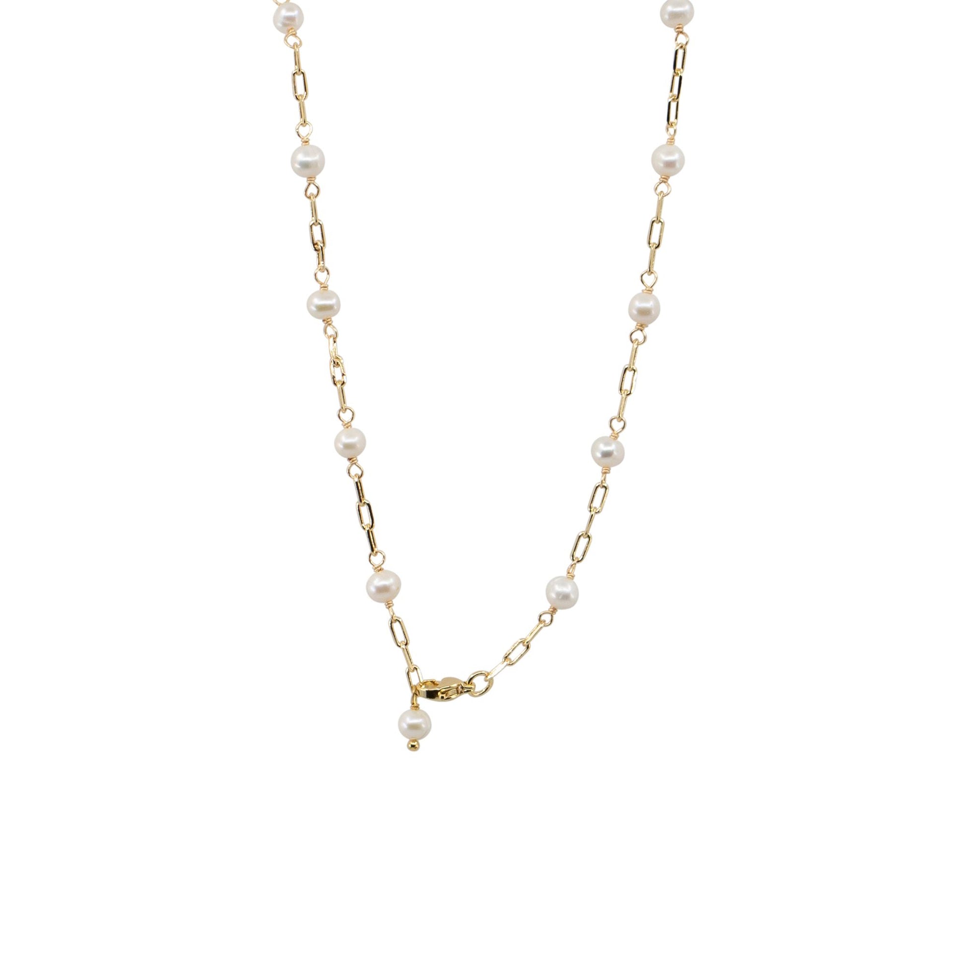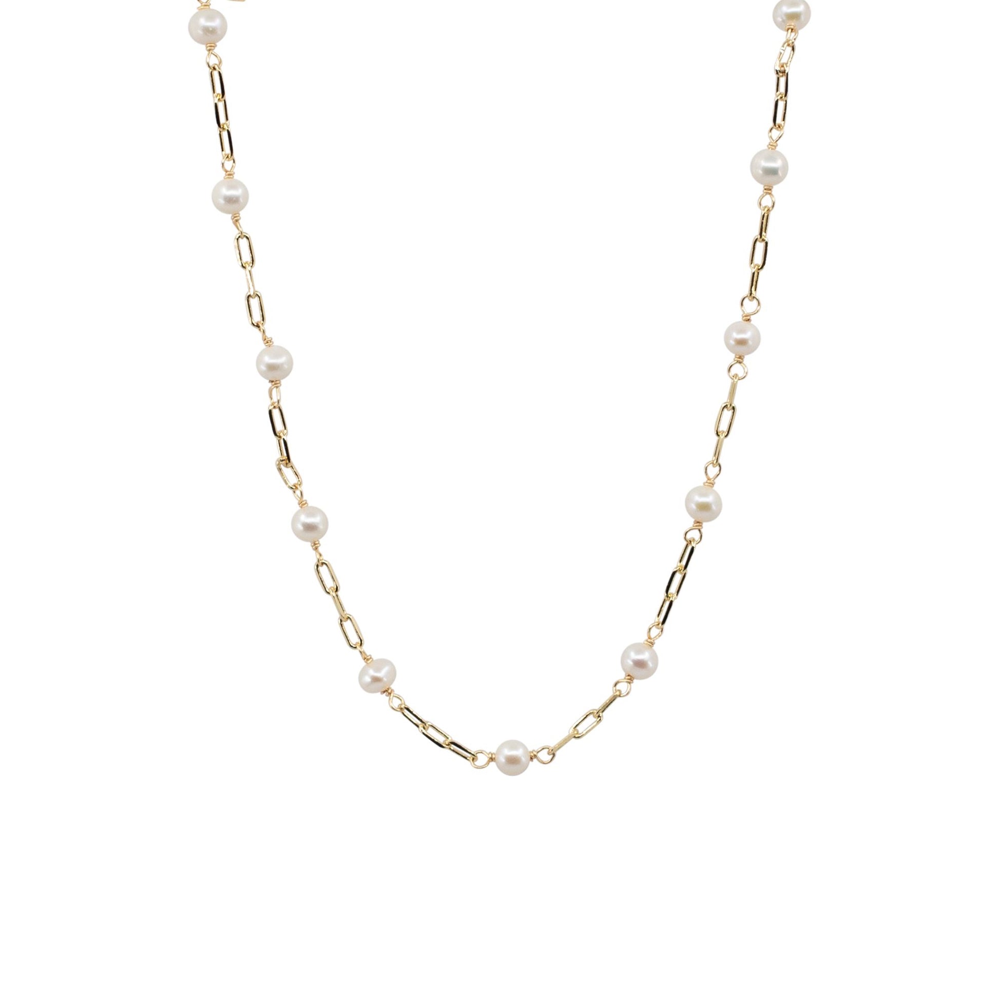 Brigett - Gold-Tone Petite Paperclip Freshwater Pearl Necklace