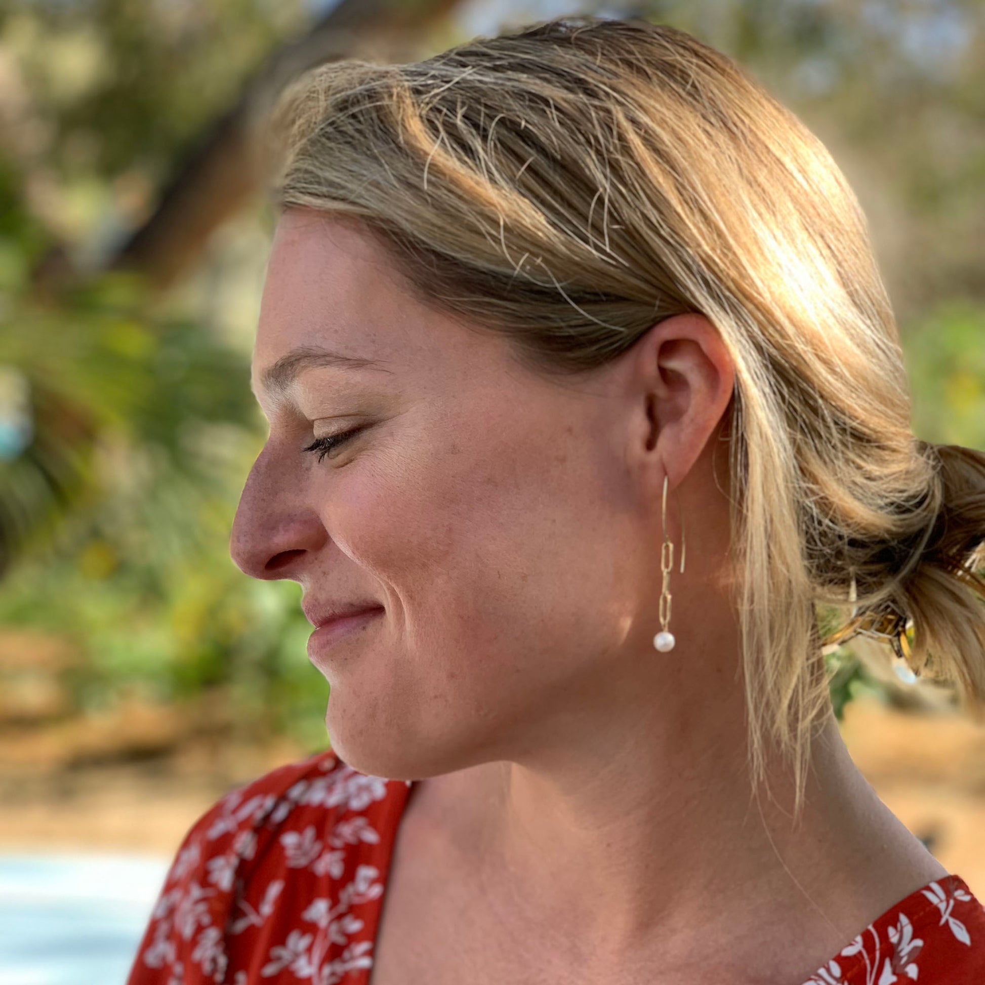 Camelia - Gold-Tone Petite Paperclip Freshwater Pearl Dangle Earrings