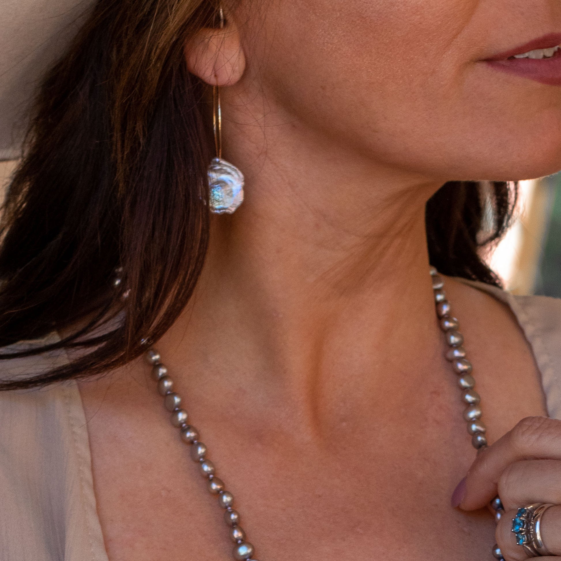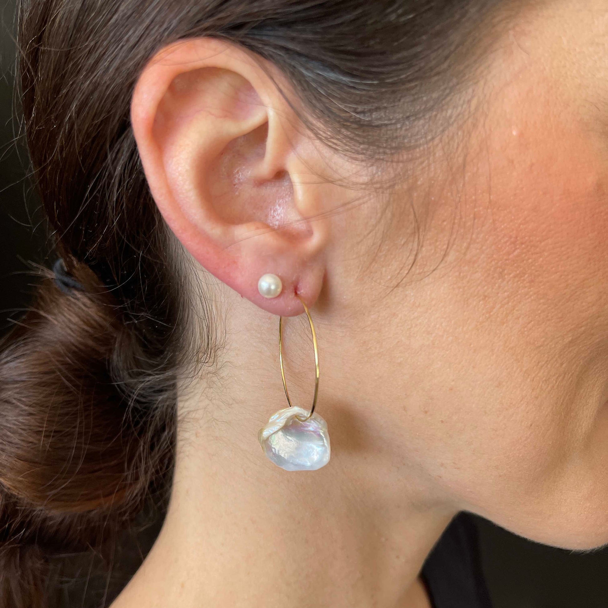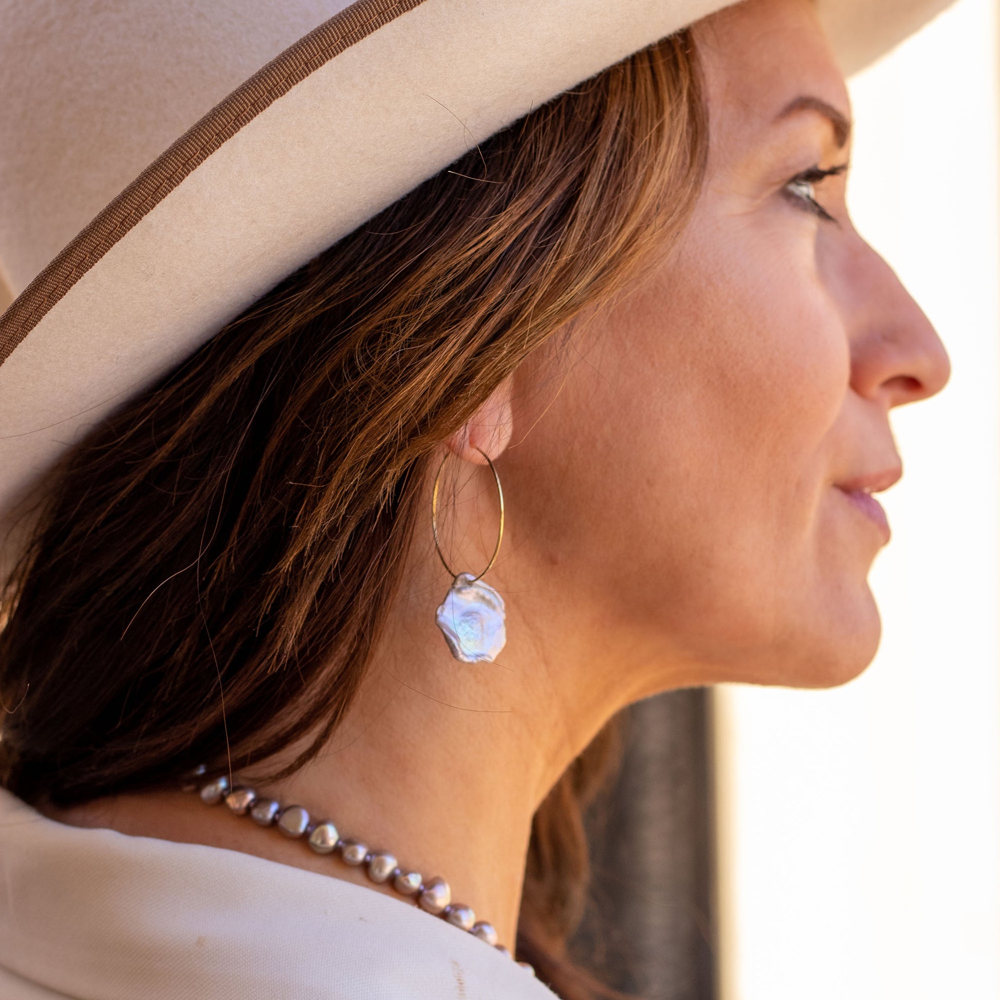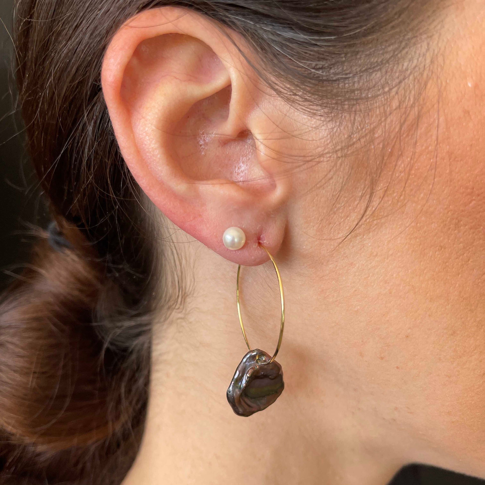 A perfect hoop for all earring lovers, our Mahal earrings are big enough to make a statement, but small enough to be dainty and feminine. Mahal’s small, gold-tone hoops feature a single keshi pearl for radiant simplicity. Each piece of jewelry created by The Freshwater Pearl Company features genuine freshwater cultured pearls. Our collections are proudly designed in Palm Springs and distributed in the U.S. from our San Diego studio for a touch of California coastal style. Pearl Type Freshwater Pearl Size 16.0mm Pearl Colors White, Dark Grey Pearl Shape Keshi Earring Material Gold-Tone Earring Type Hoop Earring Drop 2"