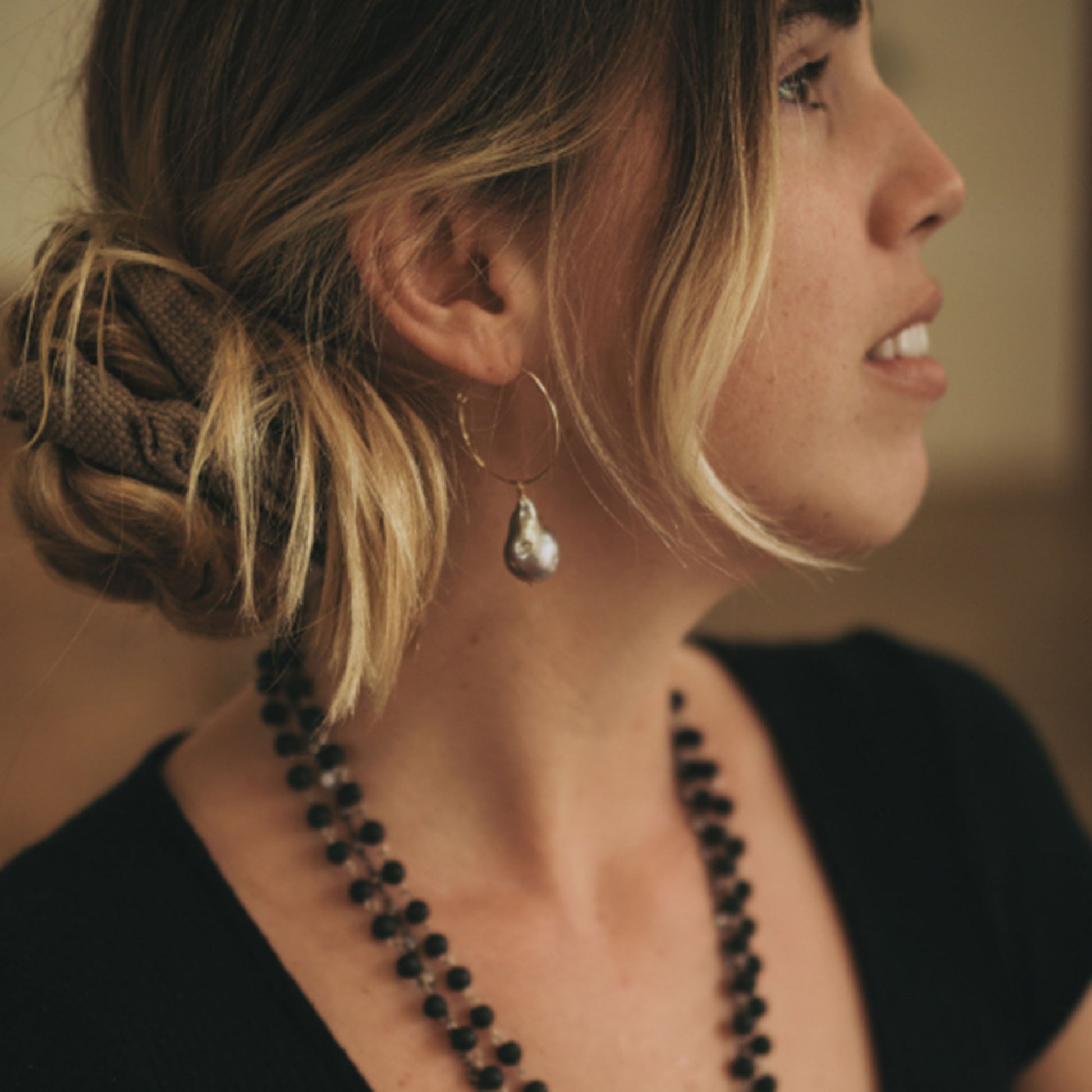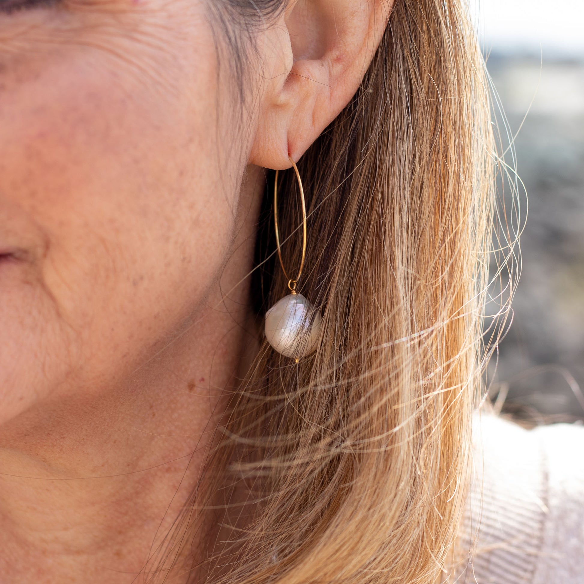 These luxe hoops are our modern take on the classic pearl earrings we all love. Styled with dramatic baroque freshwater pearls in white or silver. Chic Dione brings a touch of glamour to your day. You’ll never want to take them off. Each piece of jewelry created by The Freshwater Pearl Company features genuine freshwater cultured pearls. Our collections are proudly designed in Palm Springs and distributed in the U.S. from our San Diego studio for a touch of California coastal style.