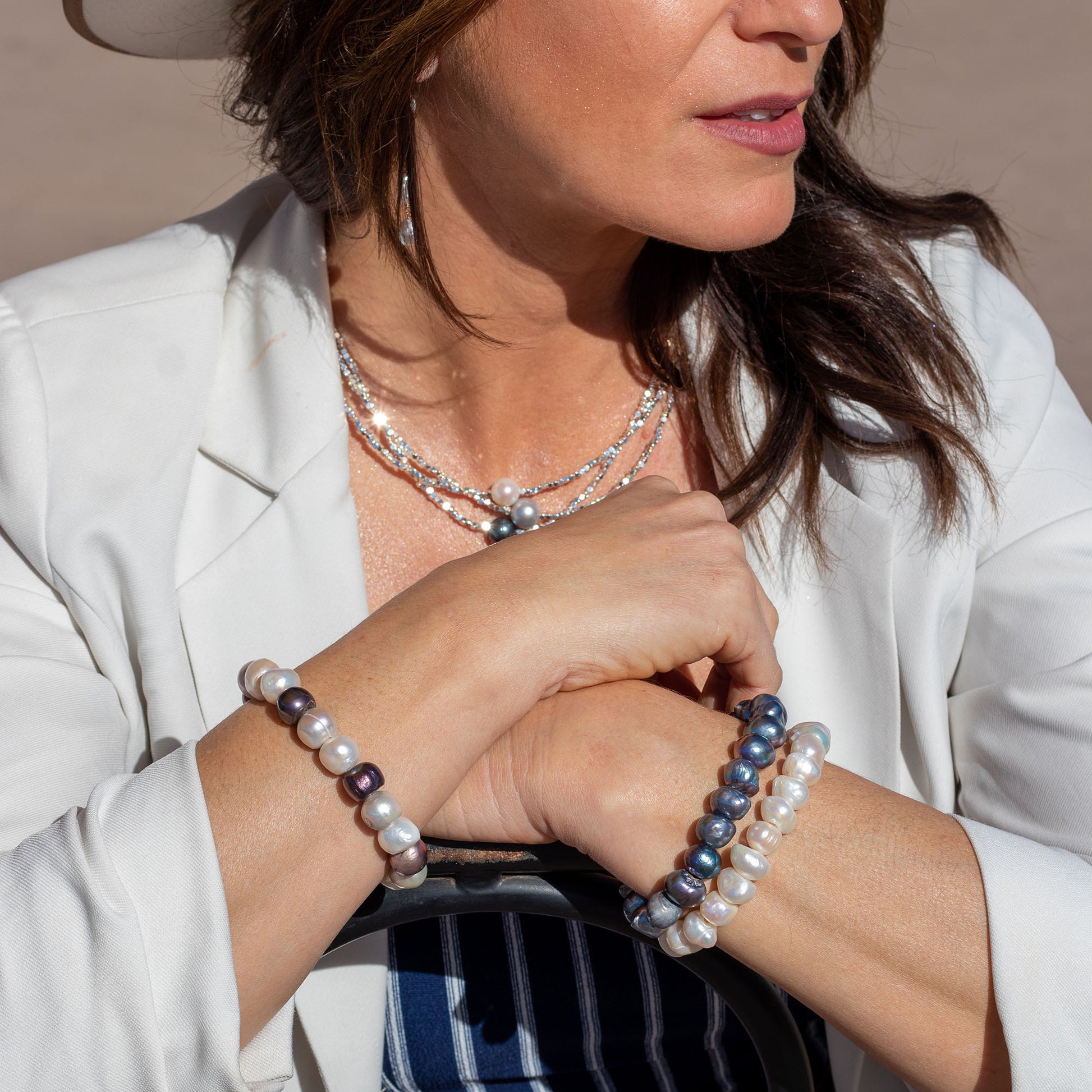 Adding a little bling to your everyday is easy when you wear our fancy freshwater pearl stretch bracelet. Euphrates lets your pearl love shine, whether you keep, share, stack or wear solo. With six pearl colors, choose the one that speaks to your heart.Each piece of jewelry created by The Freshwater Pearl Company features genuine freshwater cultured pearls. Our collections are proudly designed in Palm Springs and distributed in the U.S. from our San Diego studio for a touch of California coastal style.