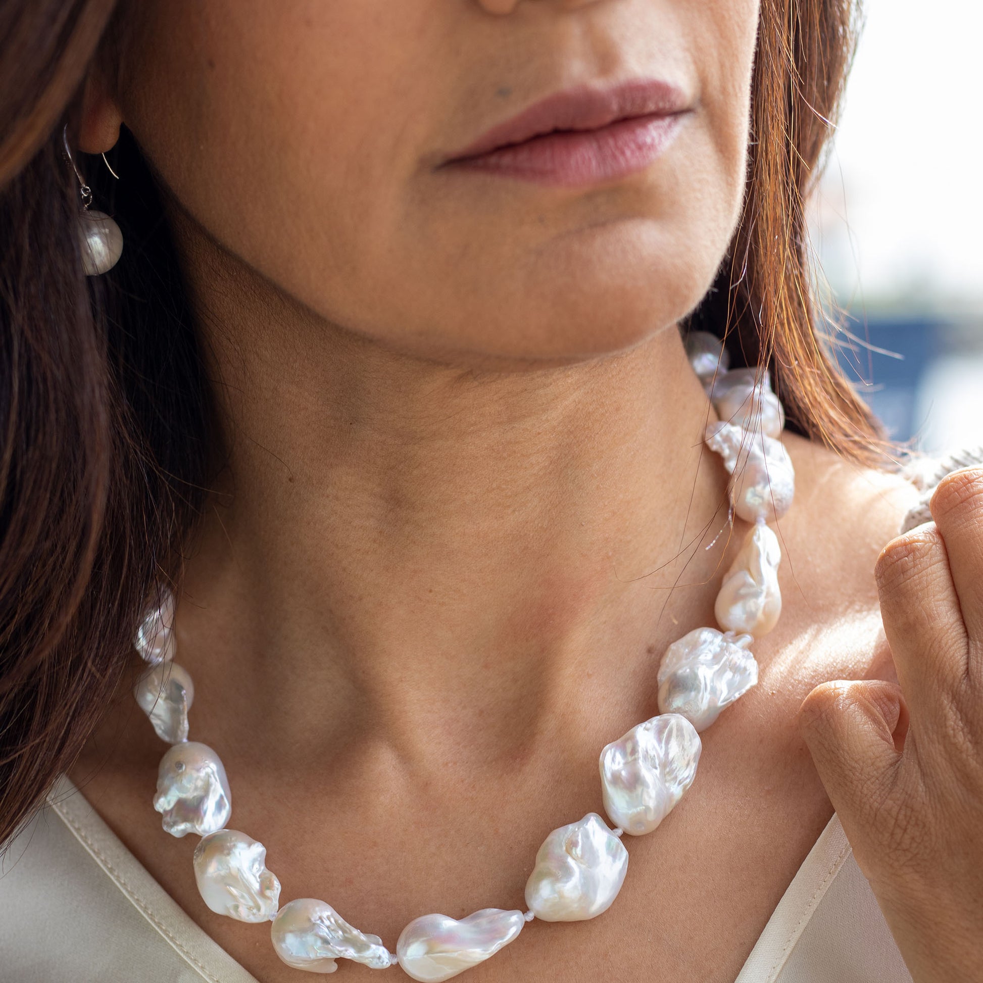 One of our most-adored statement pieces—a single, artful strand of our ever-popular baroque freshwater pearls turns your ensemble into a magnum opus! Jennifer is a classic yet fun accessory that will never go out of style. Gift one to the one-of-a-kind woman in your life or as a well-deserved treat for yourself. Each piece of jewelry created by The Freshwater Pearl Company features genuine freshwater cultured pearls. Our collections are proudly designed in Palm Springs and distributed in the U.S. from our San Diego studio for a touch of California coastal style.
